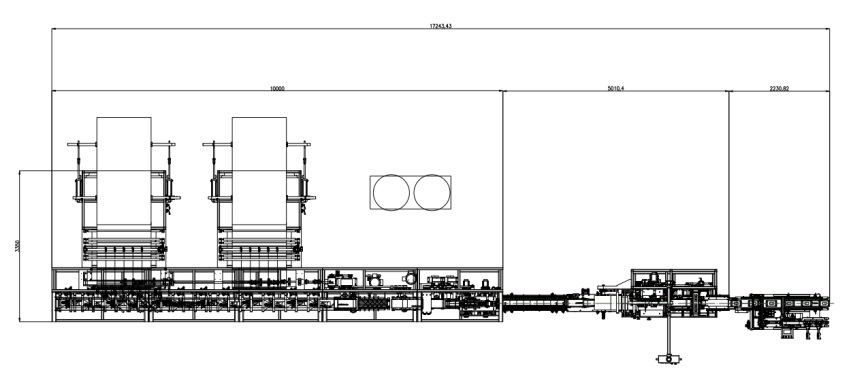自动放卷 → 自动分切 → 拐角牵引 → 纵向折叠 → 同步送布 → 加湿切断 → 堆垛计数 → 成品输送